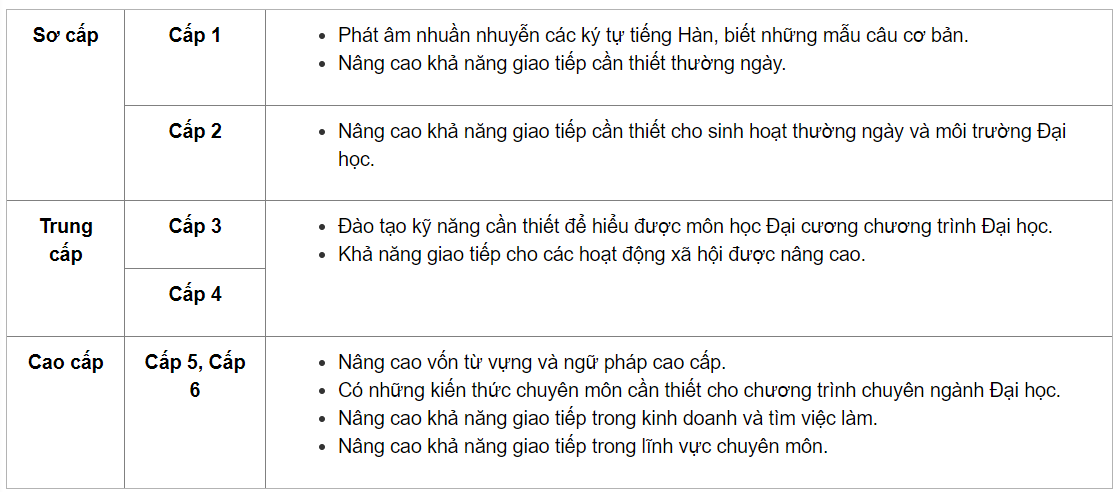 III. CHƯƠNG TRÌNH ĐÀO TẠO TIẾNG HÀN TẠI TRƯỜNG ĐẠI HỌC KYUNG HEE HÀN QUỐC