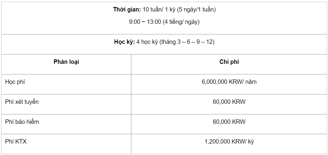 » Học phí tiếng Hàn: 6,000,000 KRW/ năm